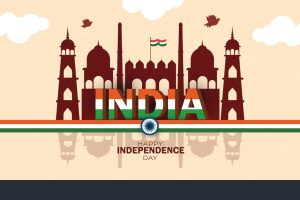 Red fort background with flying pigeon. India Independence Day 15 August Celebration Card