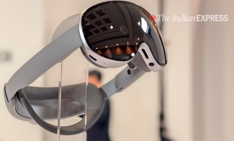 Samsung Galaxy XR headset The device looks very similar to the Apple Vision Pro – almost identical. (Image: Anuj Bhatia/The Indian Express)