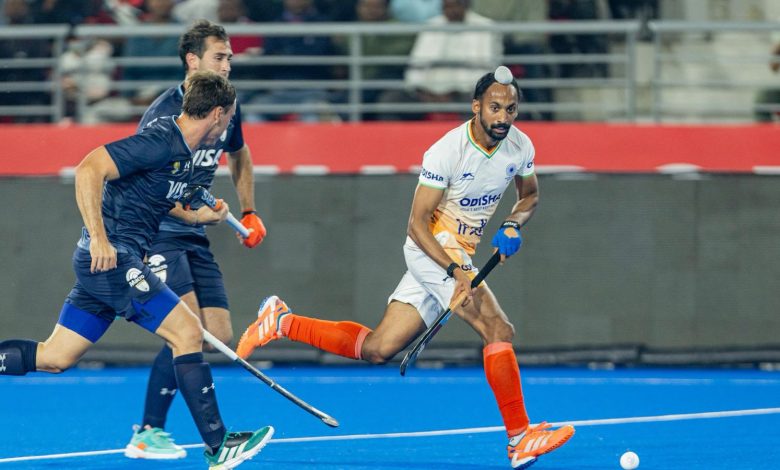 Players during IND vs ARG hockey match. (Hockey India)