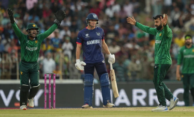 Pakistan, who had suffered a crushing loss to India, qualified for the T20 World Cup Super Eights with a massive 102-run victory over Namibia here on Wednesday.