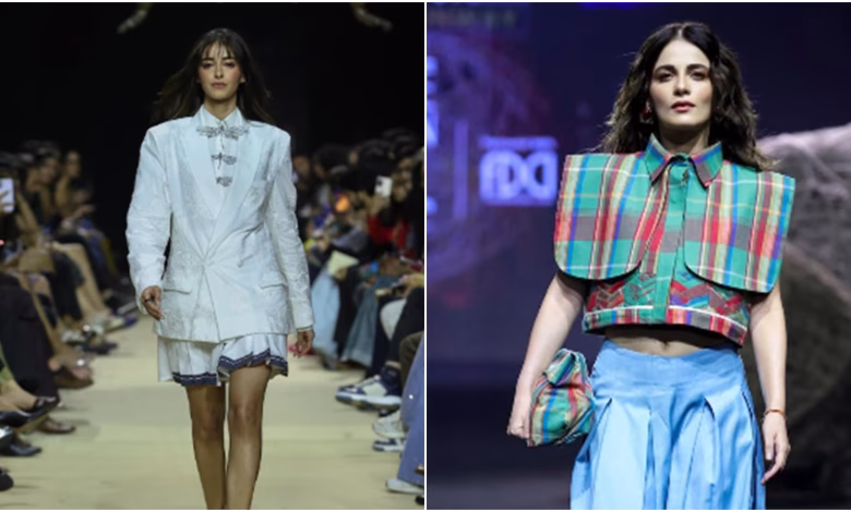Day 2 of Lakmé Fashion Week x FDCI 2026 was also spotlighted by Radhikka Madan, who walked for designers Mannat Jain and Sneha Ali Shetty. The Angrezi Medium actor delivered a cool and youthful aesthetic in a boxy, cropped shirt with vibrant Madras checks paired with teal pleated pants.